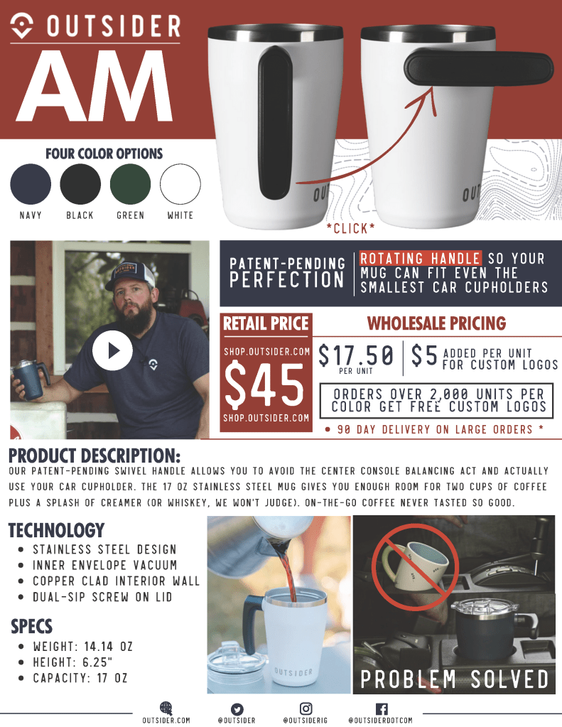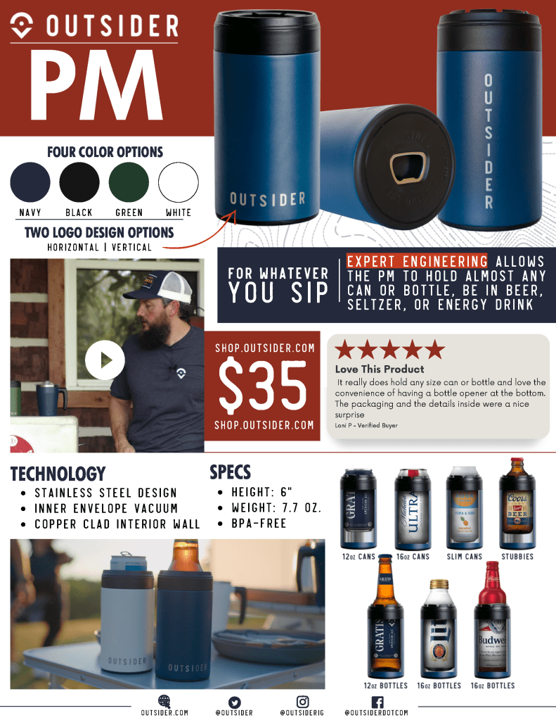 Led by former Barstool Sports CRO, Deirdre Lester, our team created multi-platform, dynamic packages for first-year clients. Outsider’s online shop launched in 2022, with a large focus on drinkware during the holiday shopping season. Our small team engaged influencers and ideated unique points of consumer contact to draw in customers during the first year of sales. I also led Outsider’s content by creating a range of original series to build Outsider Brand IP and engage target sponsors. Our sponsored content aimed to highlight the synergy between two brands in a single, authentic piece of content. (Learn more about those series here.)